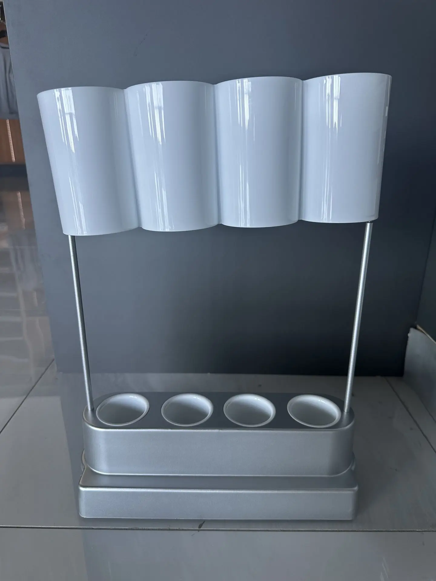 The unit is equipped with four deep cylindrical compartments, each dedicated to holding one umbrella securely. The design ensures umbrellas stand upright, preventing them from leaning, sliding, or causing clutter. Suitable for both full-sized umbrellas and compact foldable umbrellas.